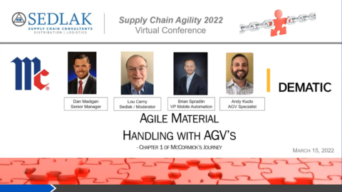 This session of Sedlak's Supply Chain Agility 2022 Virtual Conference provides insight into successfully evaluating, justifying and implementing AMR technology. Learn how a customer went through the AMR selection process from initial investigation of AMRs through integrating them into their operations. This session will provide lessons learned, the timeframe from evaluation through the successful fully operational system and the ultimate benefits achieved.
